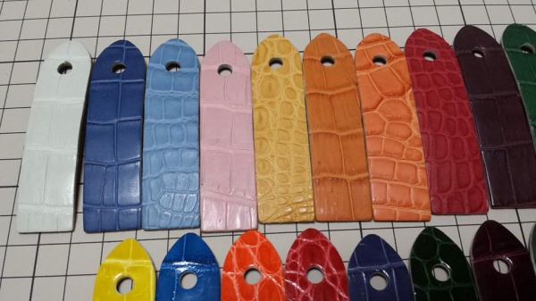ベルト見本一部です(写真はクロコダイル、カイマン、リザード)