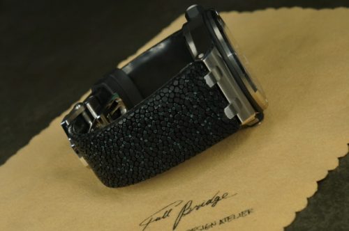 時計本体+純正Dバックル、およびオーダーストラップ両面に完全無機質ガラスコーティング、ストラップのみガラス含有撥水コーティングを施工し、耐久性・防汚性・光沢を一層高めています。