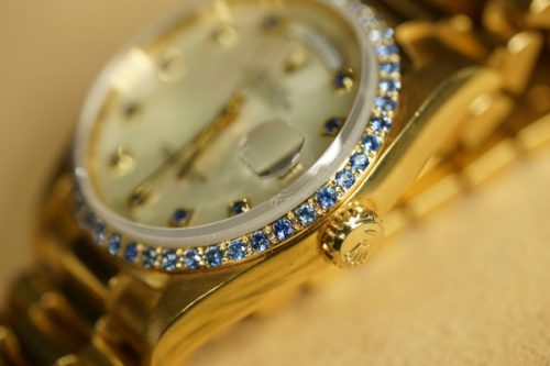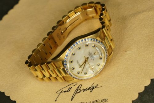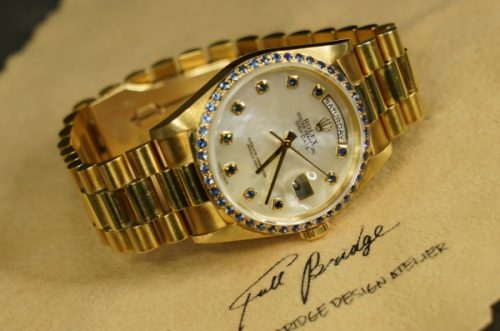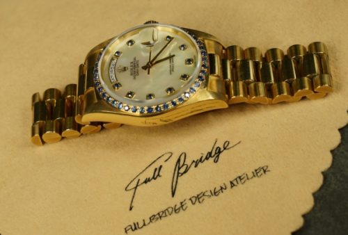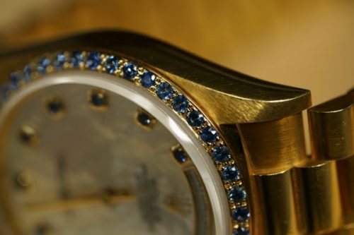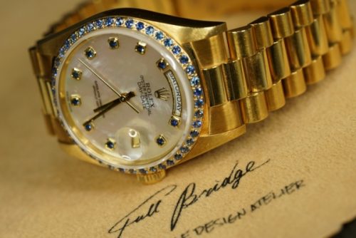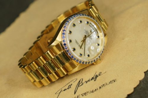 今回はこの個体に対し、天然サファイアをベゼル全周にアフターセッティング。